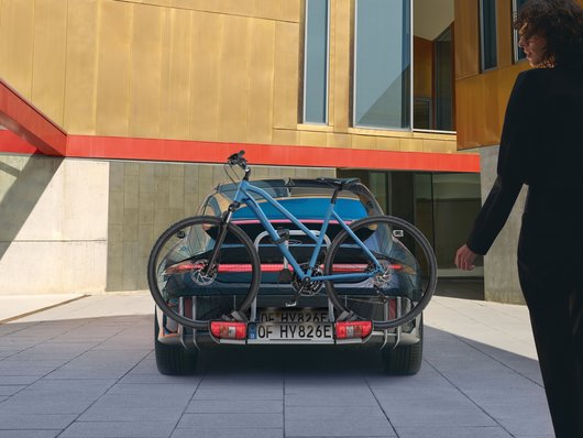 Здатний перевозити 2 велосипеди, а також підходить для електронних велосипедів з максимальною загальною вагою до 60 кг. Зручний механізм нахилу забезпечує безперешкодний доступ до області багажника без необхідності знімати велосипеди. Замикається, легко завантажується, і ви можете відкривати двері багажника, маючи велосипеди ззаду.
