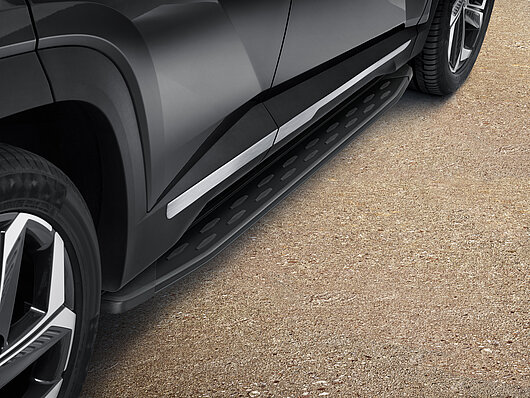Ці міцні підніжки з матового алюмінію додають сміливої ​​впевненості та стилю профілю вашого автомобіля. І вам буде легше зайти в салон. Вони мають протиковзкі гумові вставки. Набір з 2 шт.