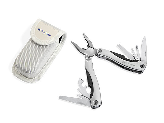 9 інструментів із 13 різними функціями: гострогубці, стандартні плоскогубці, різаки для дроту, 3 плоскі викрутки (мала, середня та велика), хрестова викрутка, ніж, пила/рибогубець, напилок, розгортка, відкривачка для консервів та відкривачка для пляшок